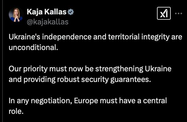 Глава европейской дипломатии Кая Каллас заявила, что "независимость и территориальная целостность Украины безусловны".