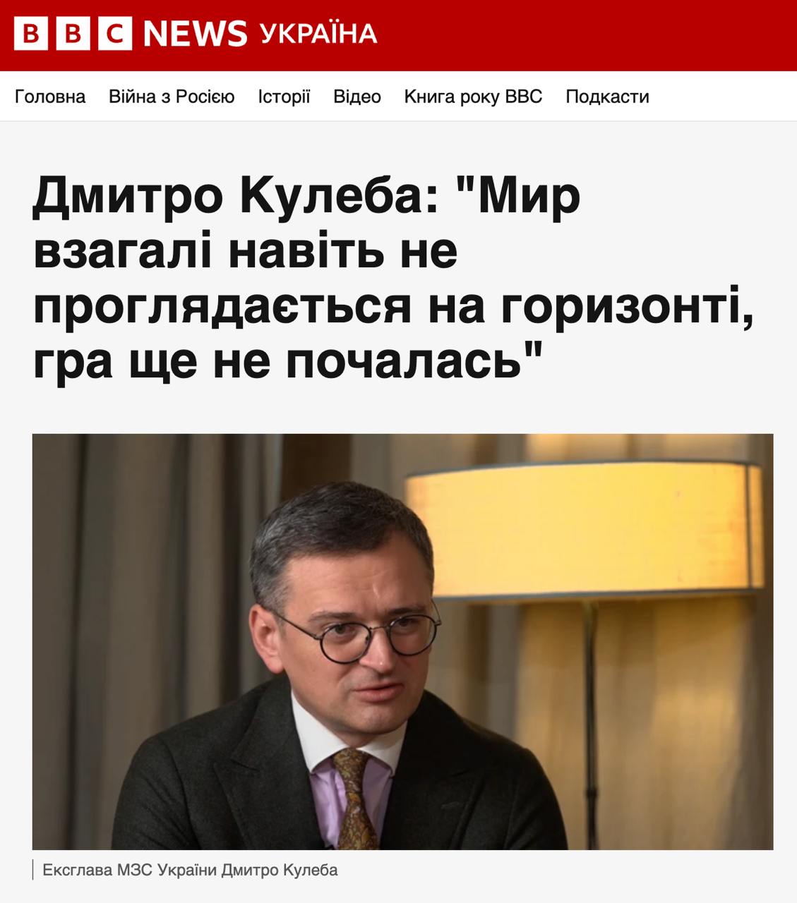 "Я вижу сейчас в американской позиции, они считают, что что-то вроде Минска-3 – это единственный реалистичный сценарий. Но тогда мы должны честно сказать людям: смотрите, мы не останавливаем войну, а просто уменьшаем интенсивность боевых действий. У нас будет какое-то квазиперемирие, во время которого будут стрелять и убивать, но просто не в тех масштабах. Так будет продолжаться некоторое время, пока не вспыхнет новая война", - полагает Кулеба.