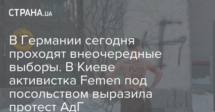 В Германии сегодня проходят внеочередные выборы. В Киеве активистка Femen под посольством выразила протест АдГ