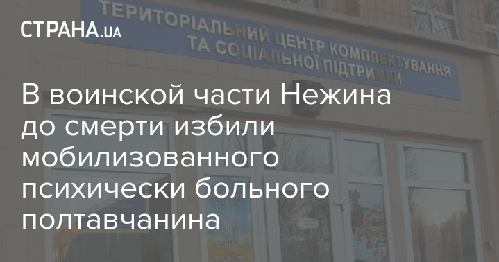 Очередной инцидент с гибелью мобилизованного произошёл в воинской части северной Украины, где психически больного полтавчанина жестоко избили до смерти.