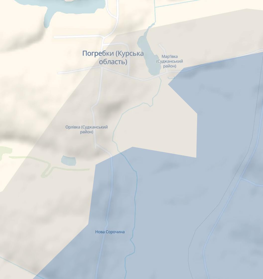 Минобороны РФ также заявляет о взятии под контроль населенного пункта Новая Сорочина в Курской области (северная оконечность украинского плацдарма). Украина этого не подтверждала. На карте Deep State он пока указан под контролем ВСУ.