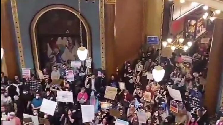 Трансгендеры вчера устроили митинг в Капитолии американского штата Айова. Фото: скрин с видео
