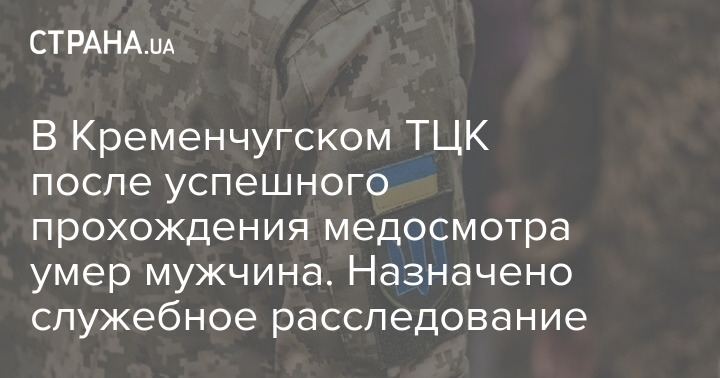 В Кременчугском районном территориальном центре комплектования умер мобилизованный вскоре после прохождения военно-врачебной комиссии, которая признала его годным к военной службе.