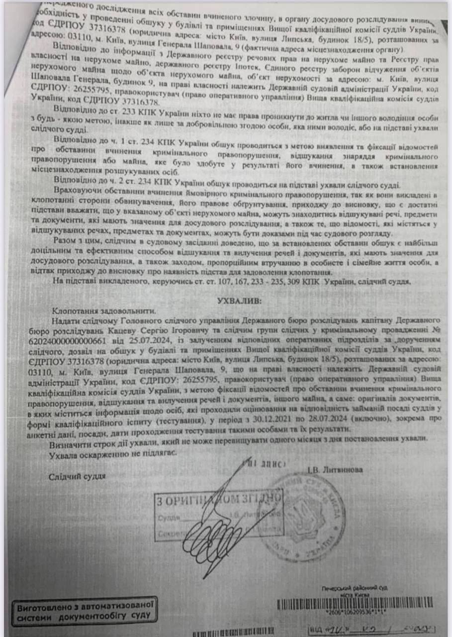 Ранее следователи уже получали временный доступ к документам, связанным с тестированием судей в 2021–2024 годах, однако не смогли их изъять. Поэтому суд дал разрешение на обыск, чтобы обнаружить и изъять документы и другие материалы, имеющие значение для расследования.
