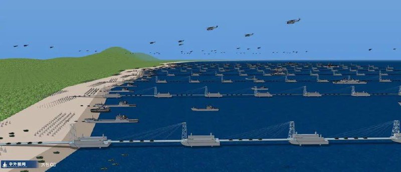 Китайские государственные СМИ опубликовали имитационные модели развертывания плавучих мостов после того, как был обнаружен плавучий колосс.