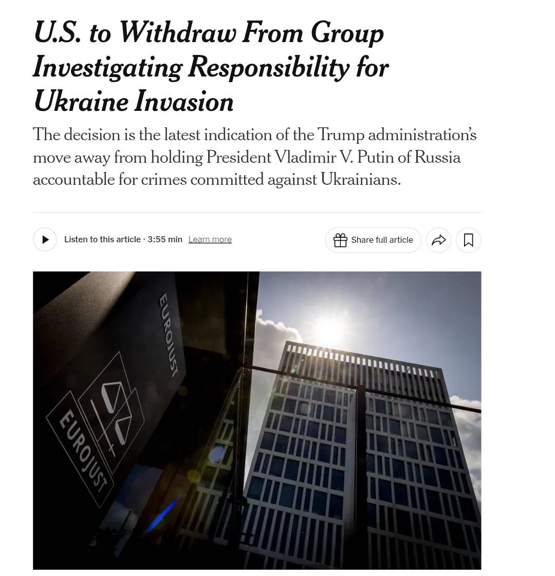 США выходят из международной группы по расследованию преступлений России в Украине - The New York Times