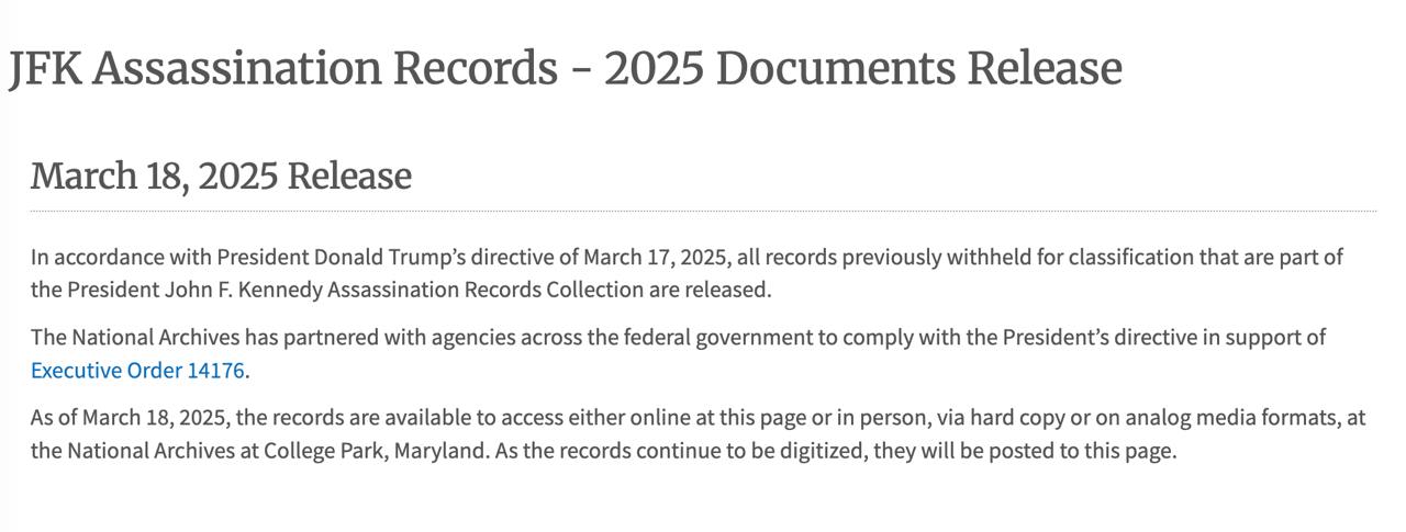 Напомним, в январе Трамп подписал указ о рассекречивании документов, касающихся убийств Кеннеди, его брата Роберта Кеннеди и баптистского проповедника, общественного деятеля и активиста, лауреата Нобелевской премии мира Мартина Лютера Кинга.