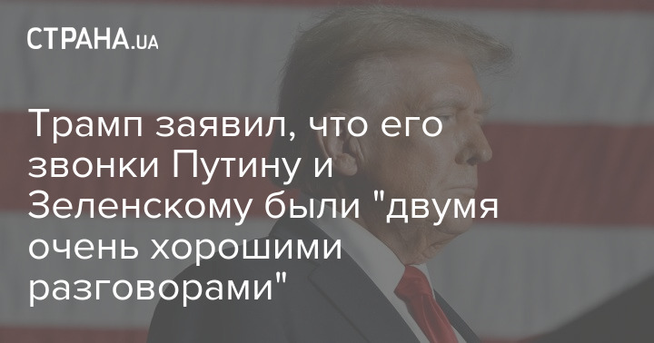 Президент США Дональд Трамп заявил, что его звонки Владимиру Путину и президенту Украины Владимиру Зеленскому были "двумя очень хорошими разговорами".