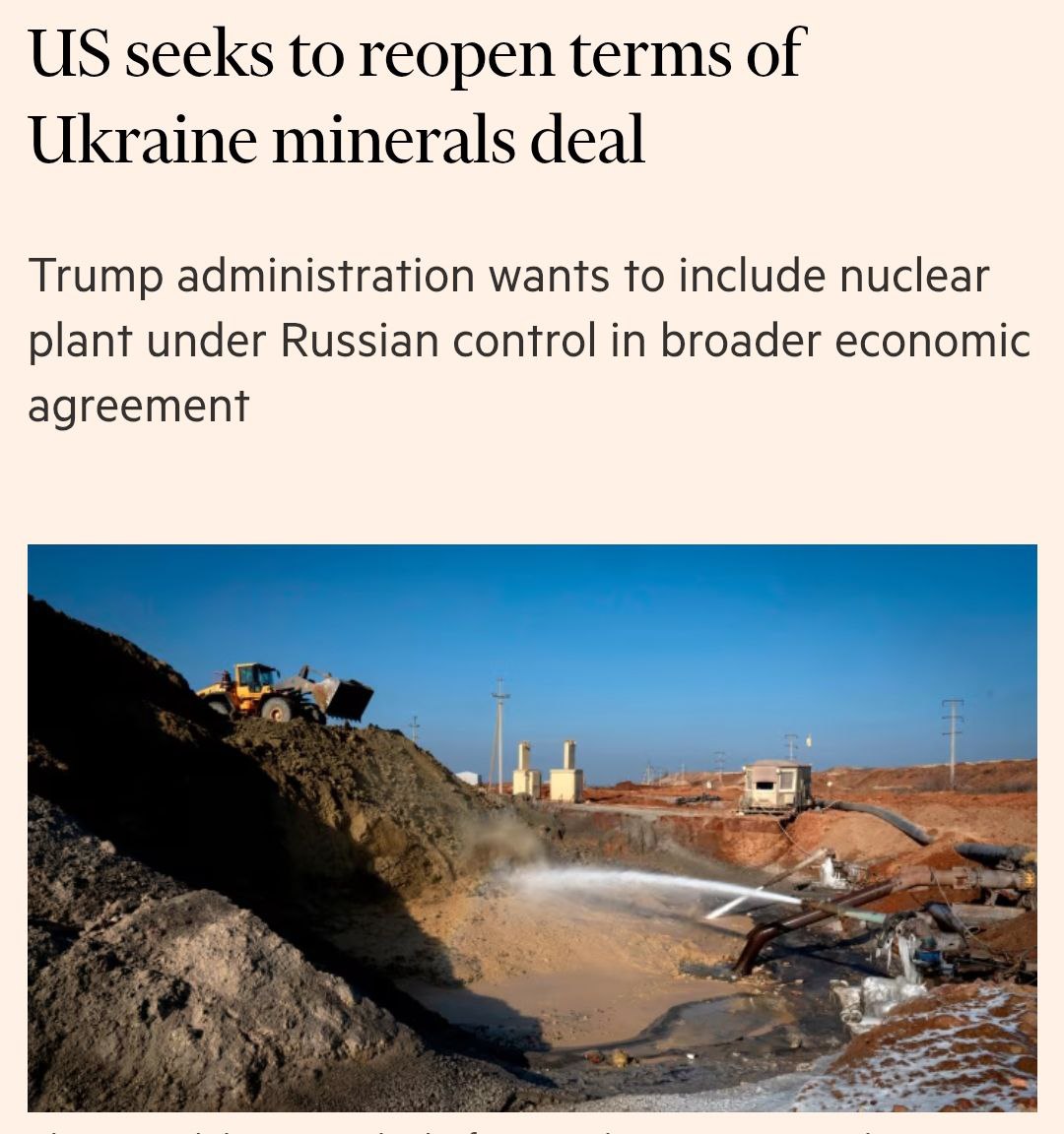 Украина, в свою очередь, стремится к поэтапному обсуждению сделки, не смешивая вопрос минералов и электростанции. Тем не менее запросы США "вызывают обеспокоенность" в Киеве.