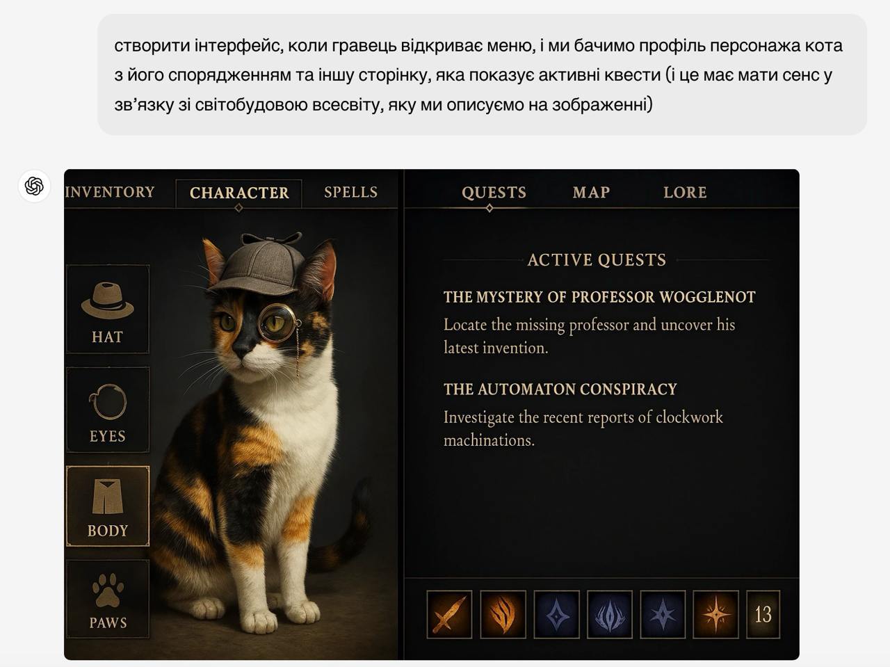 Новая система одновременно обрабатывает текст и изображения - до 20 различных объектов. Это дает возможность создавать текст на изображениях, например, для инфографики или логотипов. Также теперь ChatGPT может создавать постеры, готовые слайды для презентаций, комиксы, мемы и сцены из игр. Модель также может сгенерировать фото с нужным выражением лица.