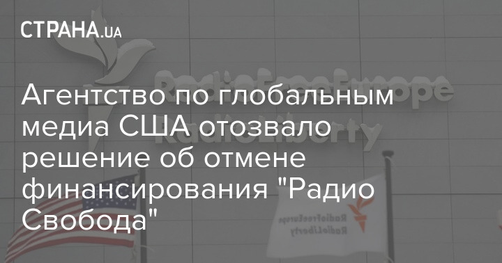 Агентство по глобальным медиа США (USAGM) отзывает свое решение от 15 марта насчет отмены гранта для американской медиакорпорации "Радио Свободная Европа/Радио Свобода".