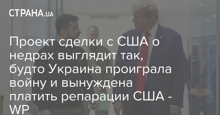 Проект сделки с США о недрах выглядит так, будто Украина проиграла войну Соединенным Штатам и вынуждена платить репарации.