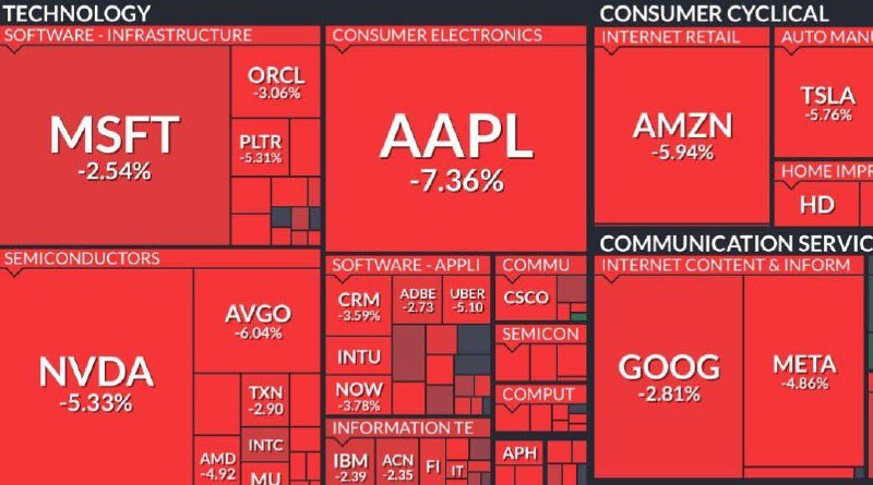 - Падают акции американских компаний в технологическом секторе - фондовый рынок потерял около 2 триллионов долларов.