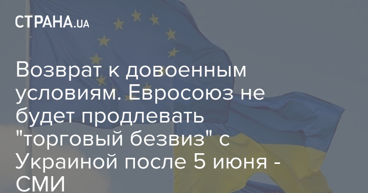 Евросоюз не будет продлевать "торговый безвиз" с Украиной после 5 июня и вернет довоенные условия.
