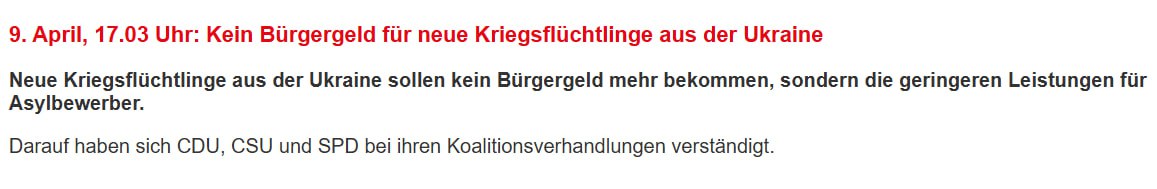 Новые беженцы из Украины больше не будут получать гражданское пособие в Германии (Bürgergeld), но будут получать вместо него меньшие пособия для просителей убежища.