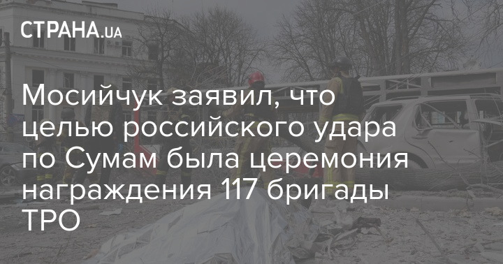 Экс-нардеп Игорь Мосийчук дает понять, что целью российского удара по Сумам была церемония награждения бойцов 117 бригады ТРО. При этом на мероприятие областные власти привели и гражданских. В том числе и детей.