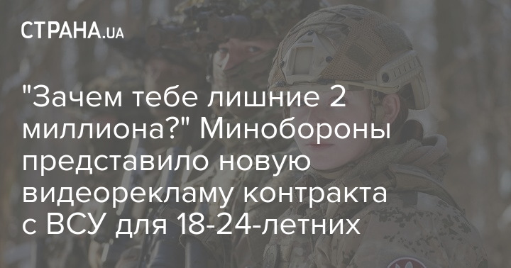 Принадлежащий Министерству обороны Украины телеканал "Армия.ТВ" выпустил агитационный ролик, рекламирующий контракт с ВСУ для молодых мужчин в возрасте 18-24 лет.