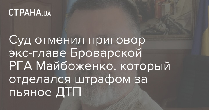 В сообщении говорится, что прокуроры добились в суде отмены приговора экс-председателю Броварской РГА Майбоженко, совершившему ДТП.