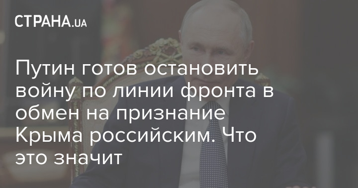 Путин готов остановить войну по линии фронта в обмен на признание Крыма российским. Что это значит