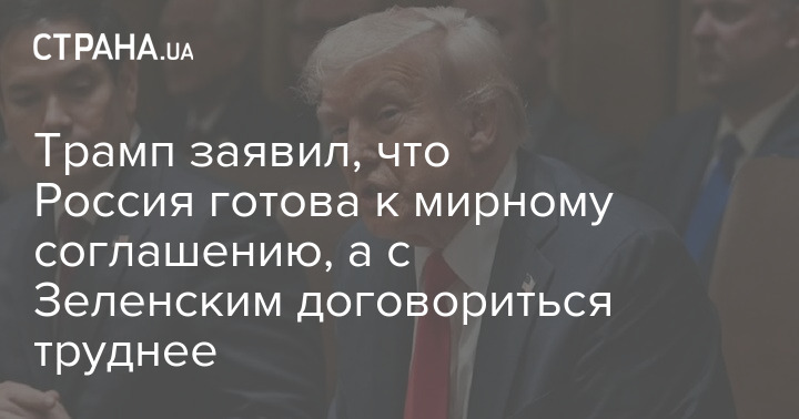 Президент США Дональд Трамп заявил, что Россия готова к мирному соглашению, а с президентом Владимиром Зеленским договориться труднее.