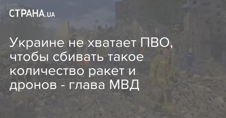 Украине не хватает ПВО, чтобы сбивать такое количество ракет и дронов. Об этом заявил глава МВД Игорь Клименко в эфире "Радио Свобода".