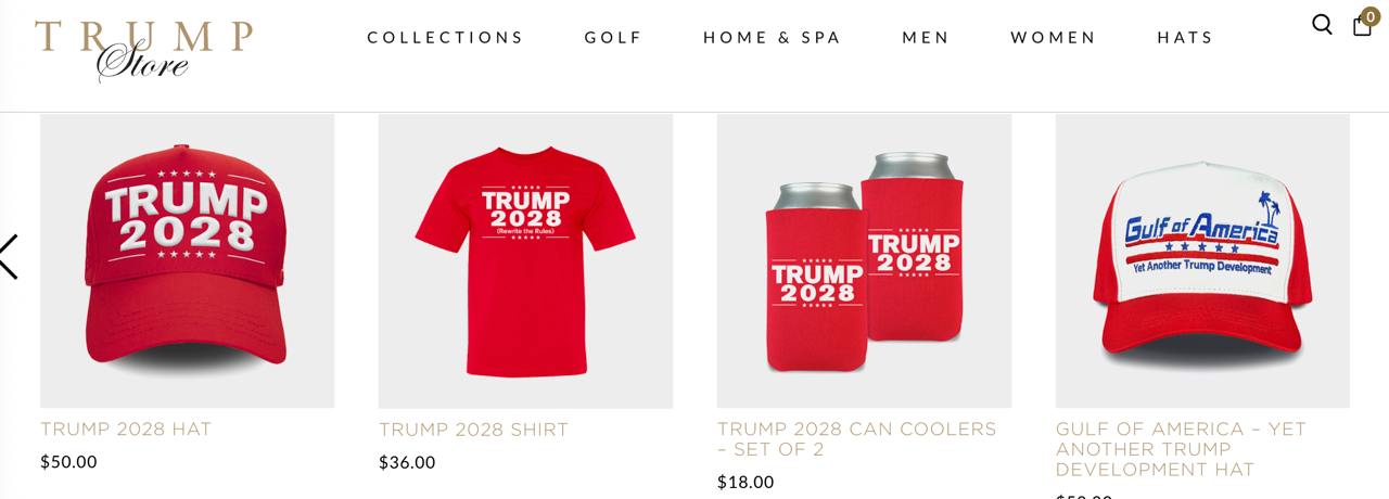 "Сделайте заявление с помощью этой кепки Трампа 2028, сделанной в Америке", - говорится в описании товара.