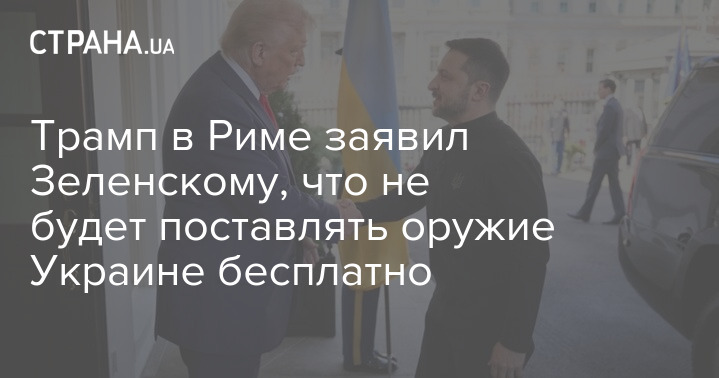 Президент США Дональд Трамп в Риме заявил украинскому лидеру Владимиру Зеленскому, что не будет бесплатно поставлять оружие Украине. Об этом рассказал сам глава государства.