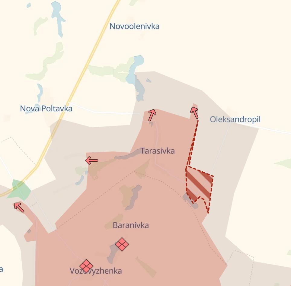 Российские войска продвинулись к югу от Константиновки в Донецкой области, захватив село Зеленое Поле (близ Александрополя).