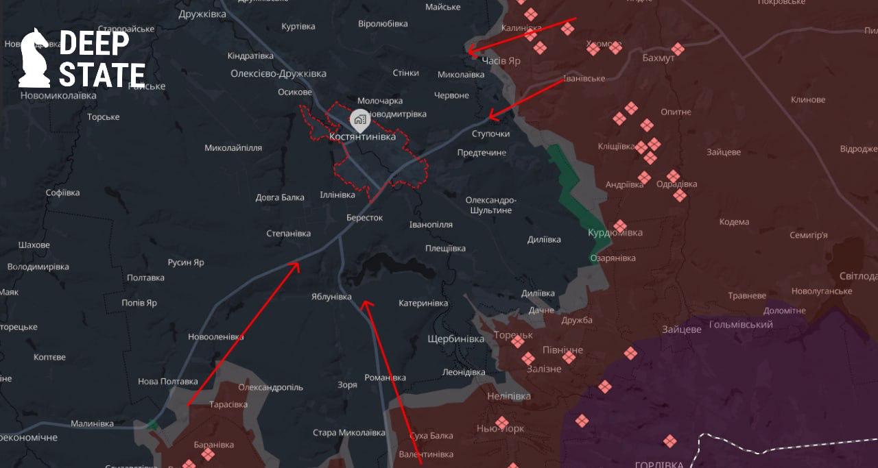 Также продолжает обостряться ситуация для ВСУ к югу от Константиновки.