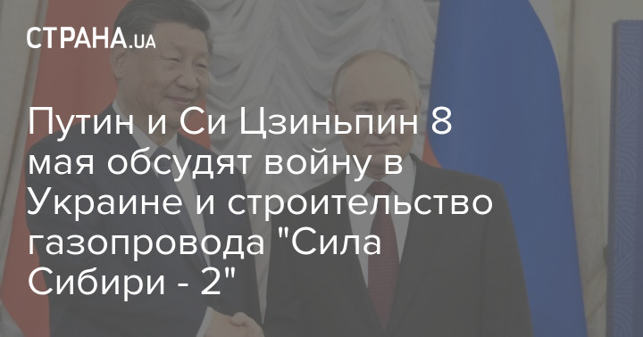 Президент РФ Владимир Путин и председатель Китая Си Цзиньпин на двусторонних переговорах 8 мая обсудят кроме прочего войну в Украине и строительство газопровода "Сила Сибири - 2", проект которого оказался в подвешенном состоянии.