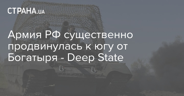 Армия РФ существенно продвинулась к югу от Богатыря Донецкой области, который находится на трассе из Константинополя на Запорожье.