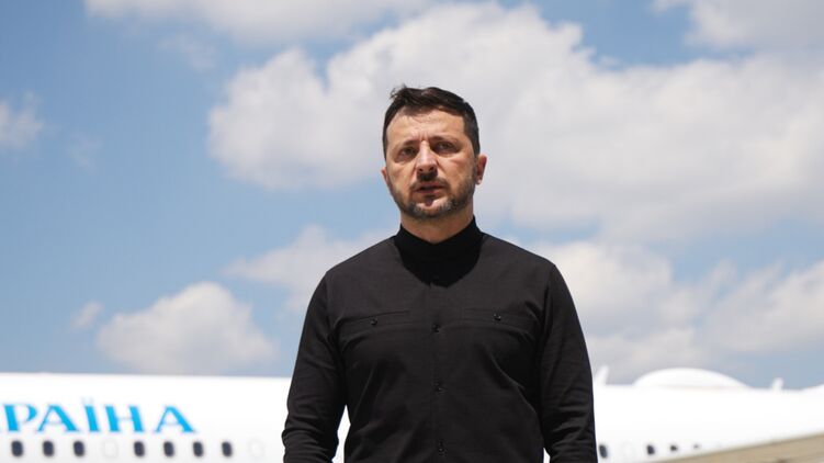 Вместе с президентом в делегацию входят первая леди Украины Елена Зеленская, глава Офиса президента Андрей Ермак, а также глава МИД Андрей Сибига.