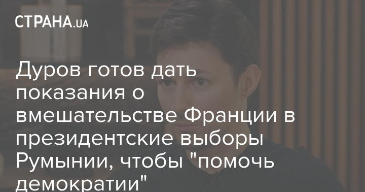 Дуров готов дать показания о вмешательстве Франции в президентские выборы Румынии, чтобы "помочь демократии"