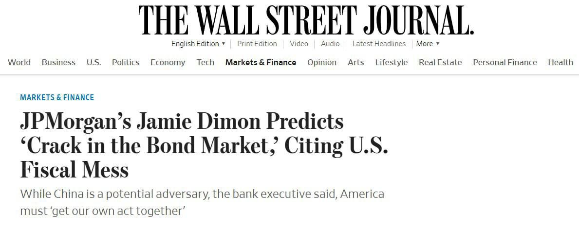 США могут столкнуться с проблемами на рынке облигаций, если не решат вопрос с госдолгом - гендиректор JPMorgan