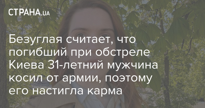 Народный депутат Марьяна Безуглая заявила, что погибший во время удара по Киеву в ночь на 17 июня 31-летний мужчина уклонялся от службы в армии и поэтому его настигла карма.