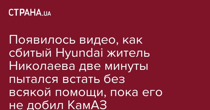 Опубликована видеозапись камеры наружного наблюдения, из которой следует, что после того, как Hyundai сбил мужчину, тот еще около двух минут пытался встать, пока его не переехал КамАЗ.
