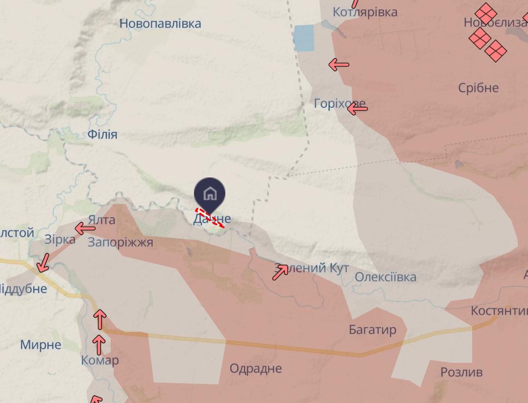 "Мучной" утверждает, что на данный момент нет достоверных подтверждений присутствия украинских сил в Дачном, кроме наблюдаемой активности российских войск внутри населенного пункта и их попыток выйти к Новопавловке с юга.