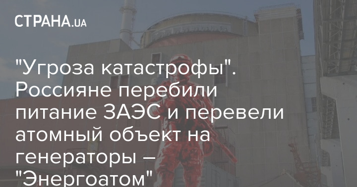 "Угроза катастрофы". Россияне перебили питание ЗАЭС и перевели атомный объект на генераторы – "Энергоатом"