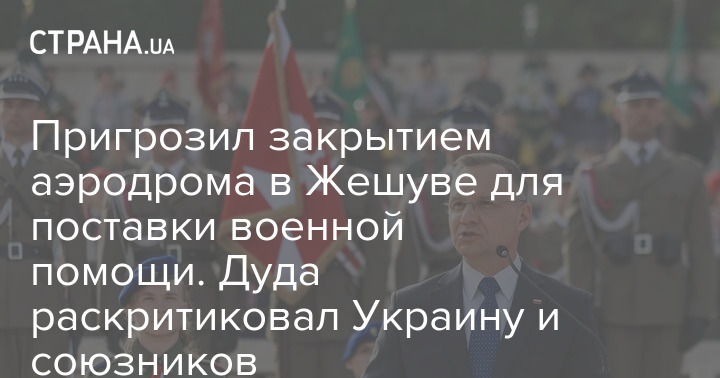 Уходящий президент Польши Анджей Дуда раскритиковал Украину и союзников за использование военного аэродрома в Жешуве, через который поставляется военная помощь. Он пригрозил его закрытием для этих нужд.