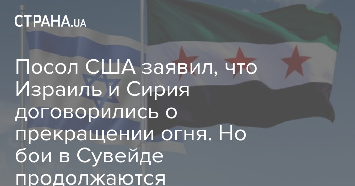 Израиль и Сирия договорились о прекращении огня в южной провинции Сувейда. Об этом заявил посол США в Турции Том Баррак, передает Reuters.