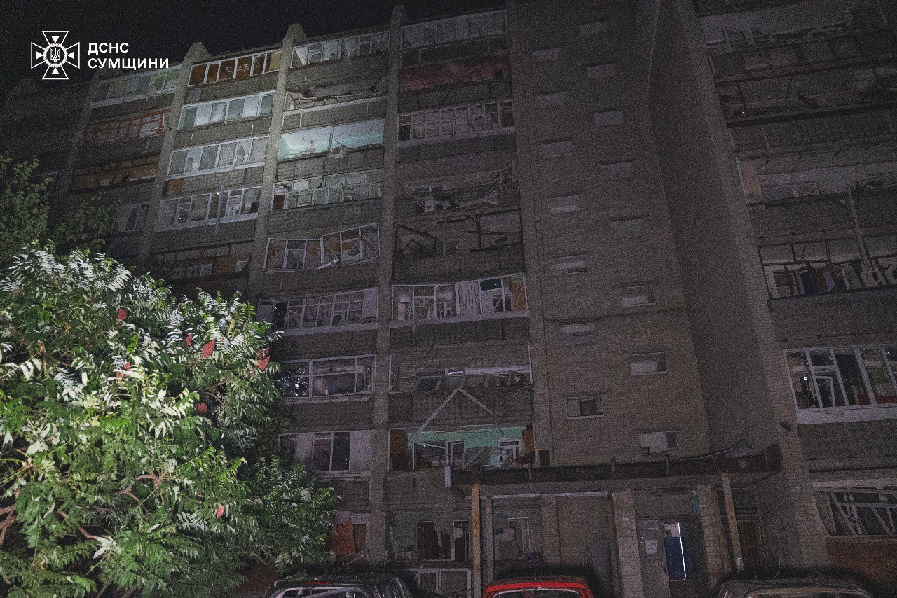 В то же время ночью Россия ударила по Сумам управляемыми авиабомбами. Спасатели ГСЧС прибыли на место, эвакуировали жителей поврежденных домов, спасли двух граждан, ликвидировали очаги возгораний и обследовали территорию.