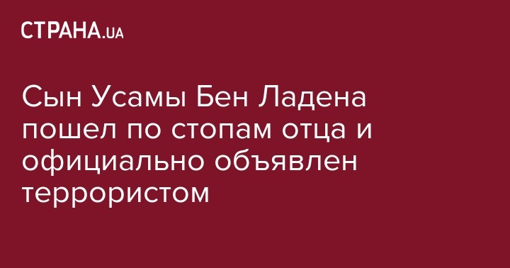 Госдепартамент США сегодня объявил о включении в список международных террористов Хамзы бен Ладена - сына ликвидированного в 2011 году главаря группировки "Аль-Каида" Усамы Бен Ладена. Об этом говорится в сообщении оборонного ведомства.