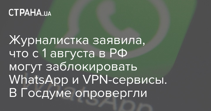 В России с 1 августа могут заблокировать мессенджер WhatsApp и VPN-сервисы. Об этом написала российская журналистка Анастасия Кашеварова, однако источник своей информации она не называет.