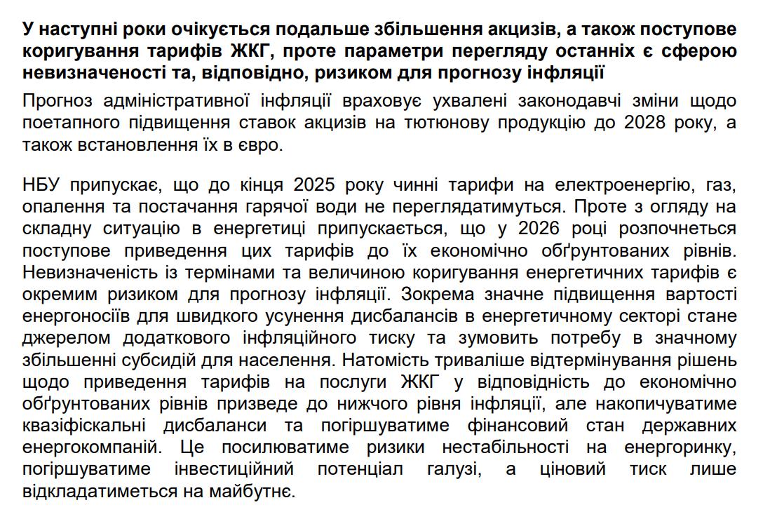 В своем инфляционном отчете НБУ предполагает, что до конца текущего года действующие тарифы не будут пересматриваться.