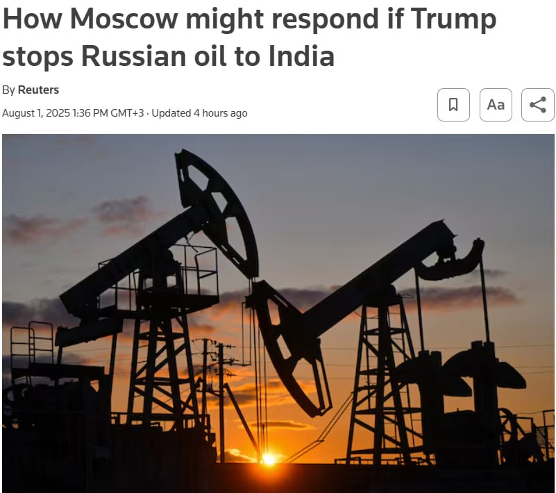 Если президент США Дональд Трамп добьётся прекращения закупок российской нефти Индией, Кремль может ответить отключением нефтепровода Каспийский трубопроводный консорциум (CPC), через который США и компании Chevron, Exxon, Shell и др. экспортируют до 1 миллиона баррелей в сутки из Казахстана через Новороссийск.