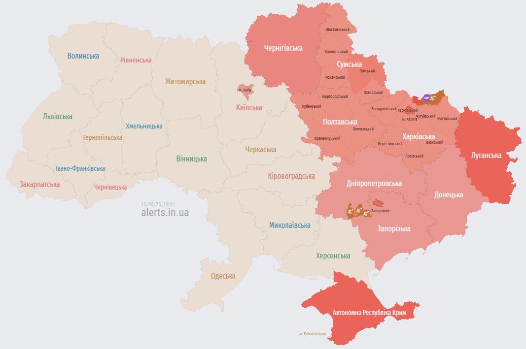 19.23 Тревога в Киеве и ряде областей.
