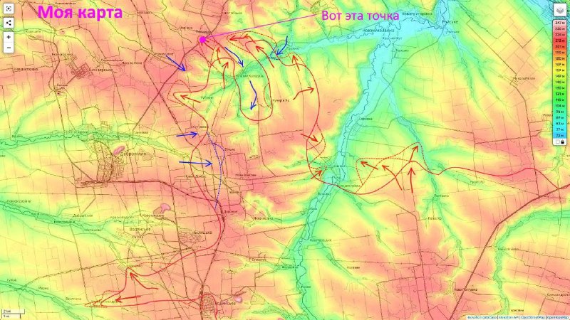Кроме того, идут бои за Маяк. Это село, как и Никаноровка, находится у основания российского вклинения, которое таким образом, видимо, хотят подрезать с двух сторон, окружив с юга всю прорвавшуюся группировку. Но между Маяком и Никаноровкой около четырех километров территории, которую удерживают россияне.