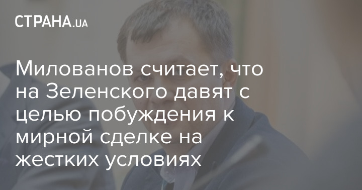 Милованов считает, что на Зеленского давят с целью побуждения к мирной сделке на жестких условиях