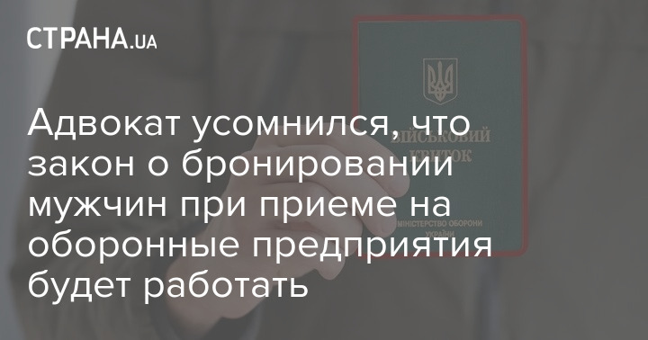 Военный адвокат Олег Леонтьев сомневается в том, что закон о предоставлении брони от мобилизации мужчинам сразу при приеме на работу на оборонные предприятия будет работать.