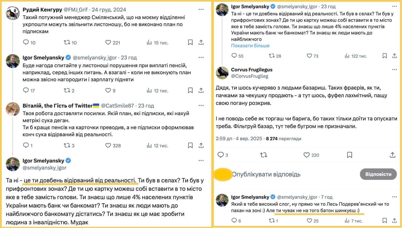 Генеральный директор "Укрпочты" Игорь Смилянский повздорил с пользователями соцсети и принялся оскорблять одного из комментаторов.